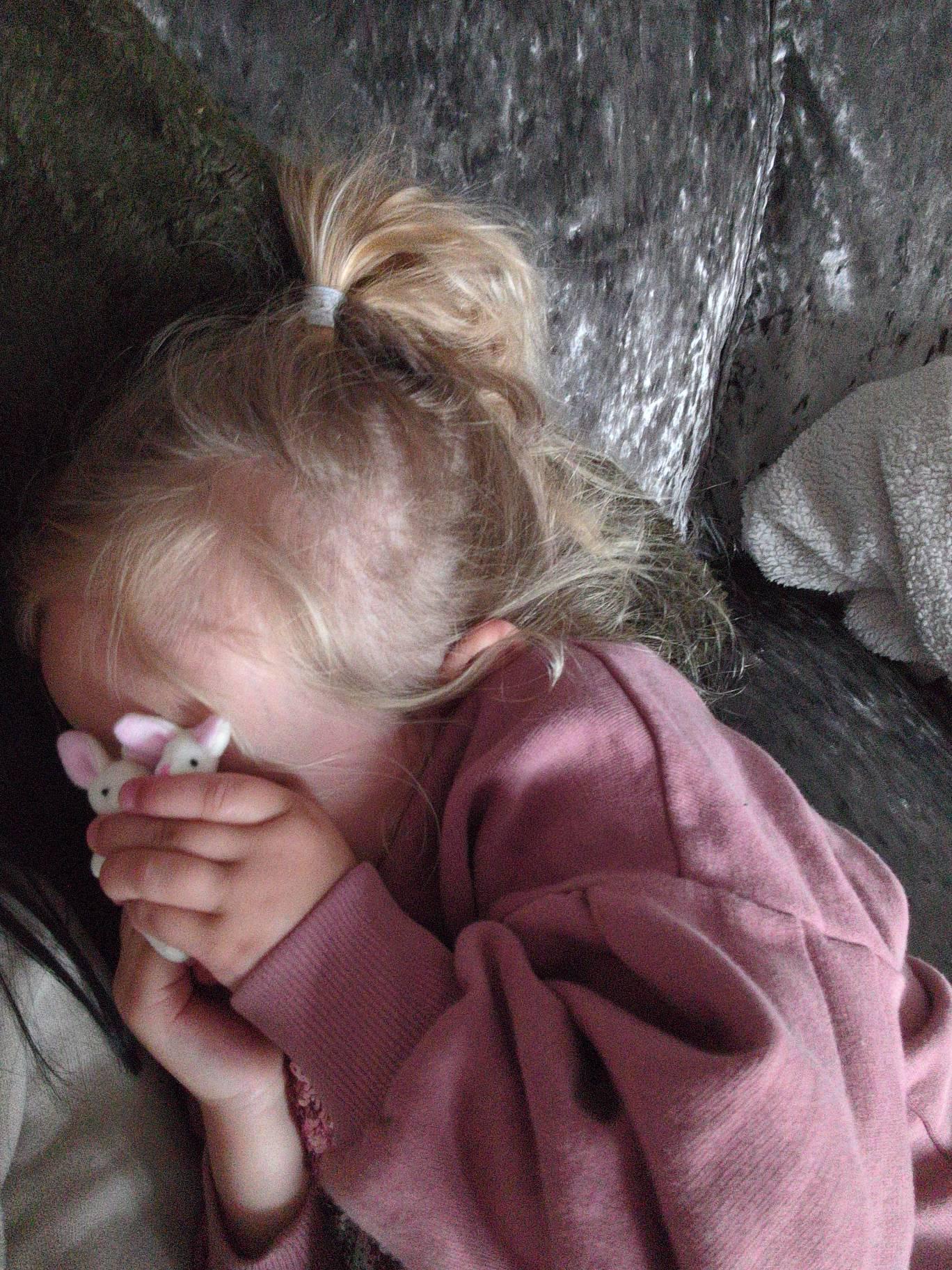 The mother and baby lie on a comfortable felt mattress, covered with a cotton blanket decorated with ribbons.