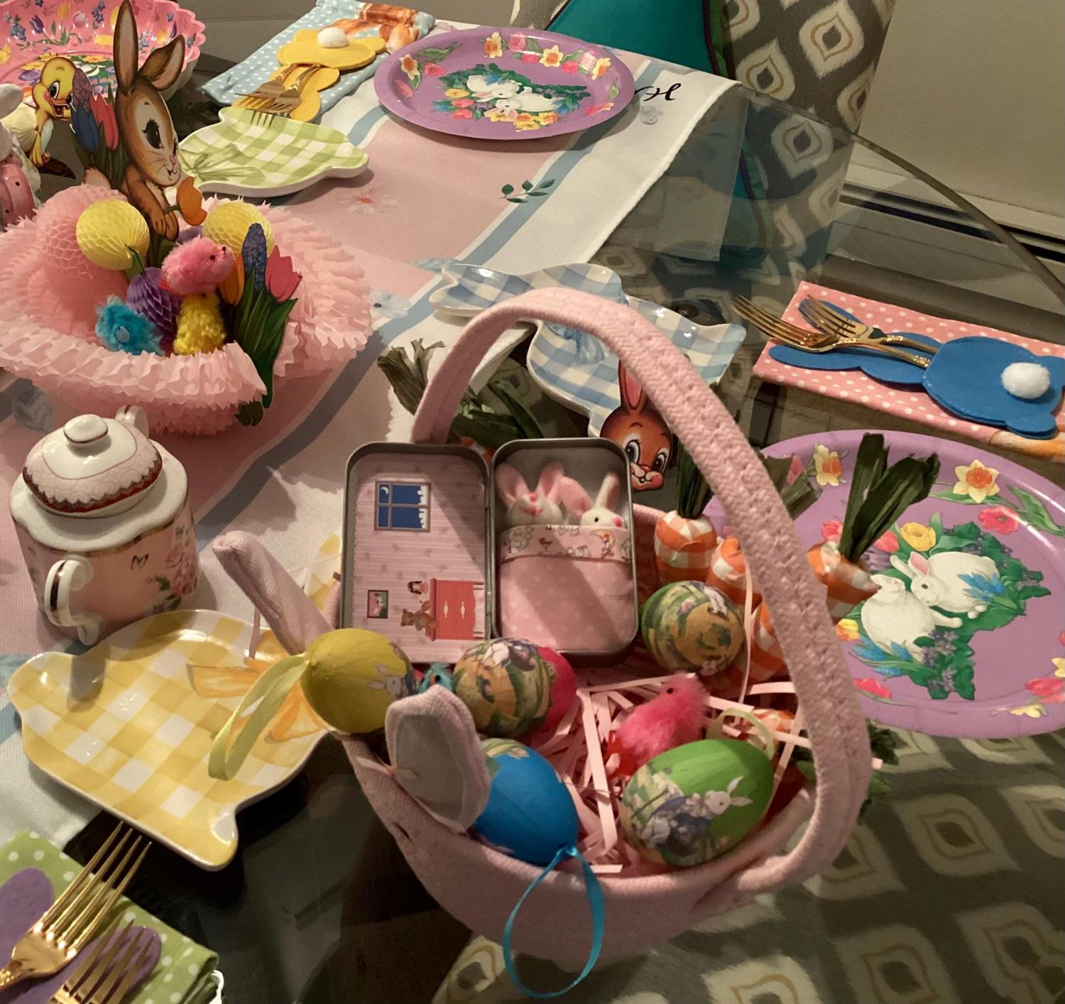 You can choose a baby rabbit with pink or blue ears. The mother rabbit has pink ears.